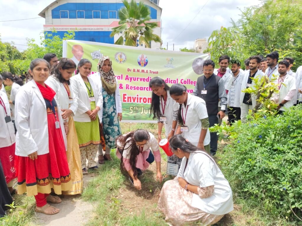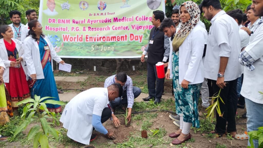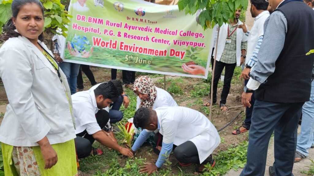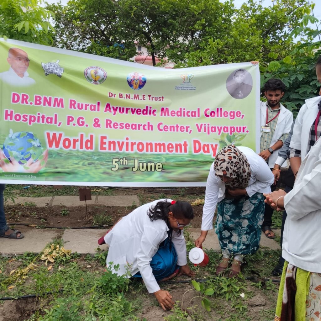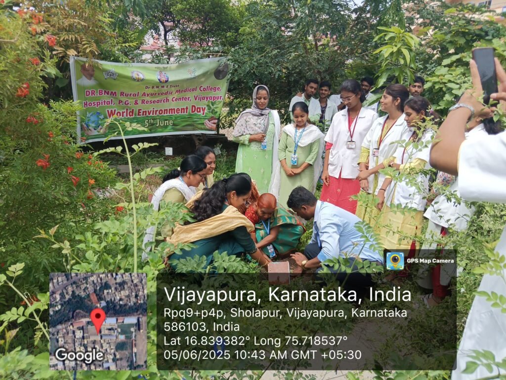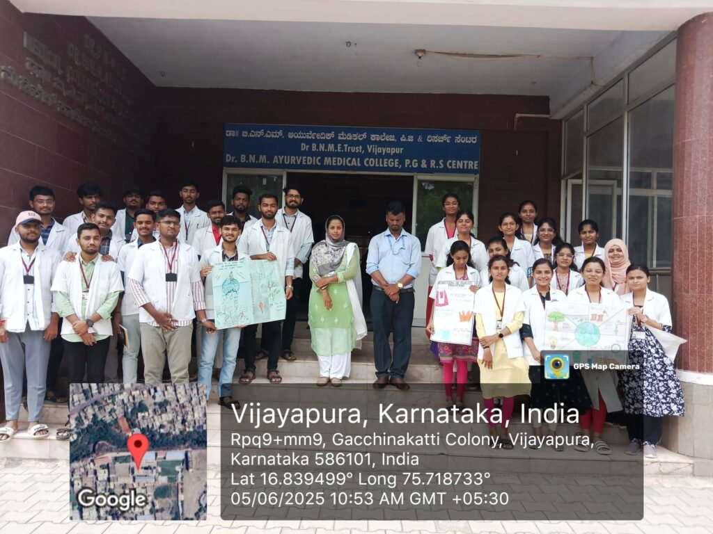To mark the occasion of World Environment Day 2025, Dr. BNM Rural Ayurvedic Medical College, Bijapur, enthusiastically celebrated the event under the global theme “Ending Plastic Pollution Globally” on 5th June 2025. The programme was meticulously organized by the Department of Dravyaguna under the leadership of Dr. Shirin M, Professor and Head of the Department, and Dr. Iranna Sajjan, Associate Professor.