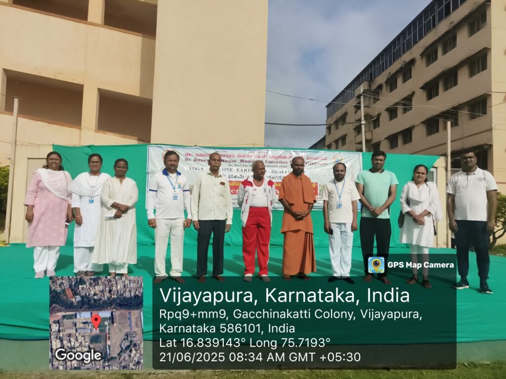 International day of yoga is celebrated every year on June 21st to create an awareness about the ancient practice of the science which is helpful to maintain the physical, psychological and spiritual lifestyle of an individual. The event was attended by the Department of swasthavritta, and all the principals and faculty members of BNME Trusts. The Event began with welcoming the guests and pouring water to plants, followed the speech on importance of yoga in daily practice by our Chief guests, Poojya Shri Ishaprasad Swamiji, Gurudeva Ashram Atharga and our beloved chairman Dr K B Nagur sir, Dr RS Kadkol madam Dean, Dr Basabaraj Bhinge Administrator, Dr Suresh loni, were presented the token of love, and started the Protocol of practice by Dr VENKATESH ILLAL Associate professor of swasthavritta department and with students by warmup exercise and Asanas,kapalabhati, pranayama, dhyana, sankalpa, and HOD of Swasthavritta department Dr KB Nagur sir and swamiji performed the advance Asanas like Shirshyasana, mayurasana and vrukshasana with at most enthusiasm, and Dr Ashwini Hosamani hosted the program and Dr Manjula Patil ended the program with vote of thanks.