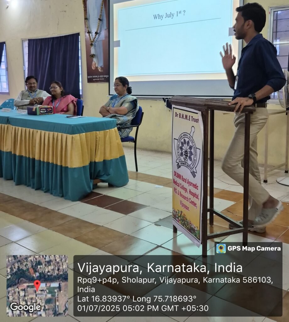 The National Doctors Day celebration at Dr. BNM Rural Ayurvedic Medical College, Vijayapura, successfully promoted Dedication, compassion, and selfless work of doctors and healthcare workers. The event concluded with a vote of thanks.