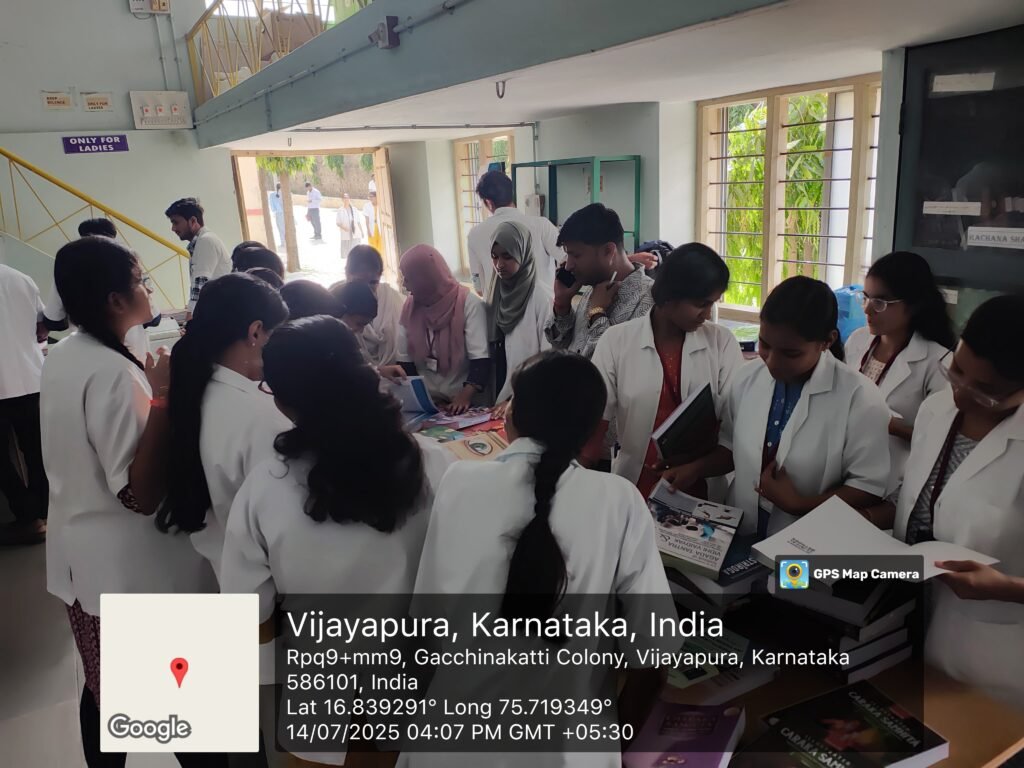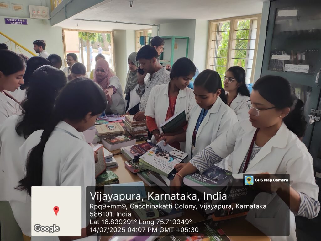 A book exhibition focusing on modern and Ayurvedic literature was successfully conducted at the Central Library of Dr. BNM Rural Ayurvedic Medical College Hospital and PG Research Centre, Vijayapura. The event provided students with an opportunity to explore a diverse range of books.