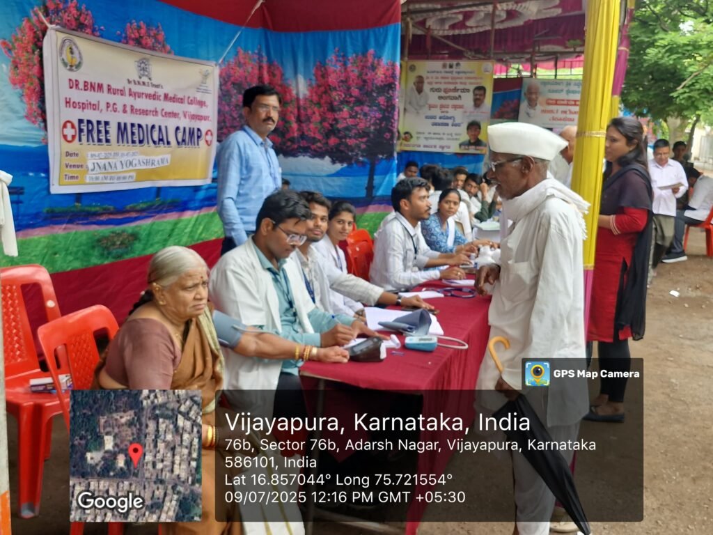 On June 16, 2025, Dr. BNM Rural Ayurvedic Medical College Hospital & PG Research Centre in Vijayapur organized a successful blood donation awareness camp. Dr. Sharanabasappa Awarasangh initiated the program and donated blood, inspiring others to participate.