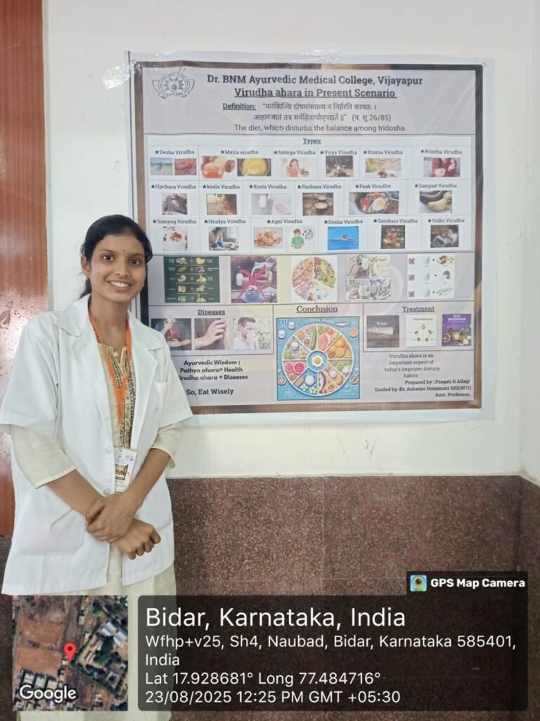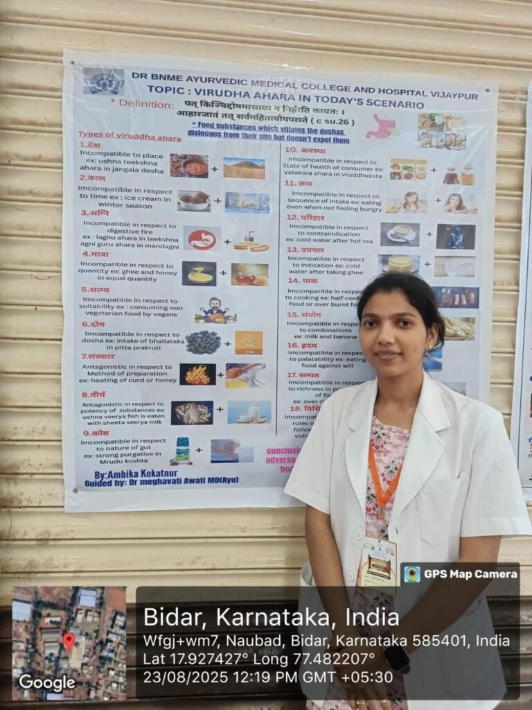 • Ashwini Hosamani Ma’am explained Swasthavritta and Yoga, emphasizing diet planning and therapeutic yoga practices.