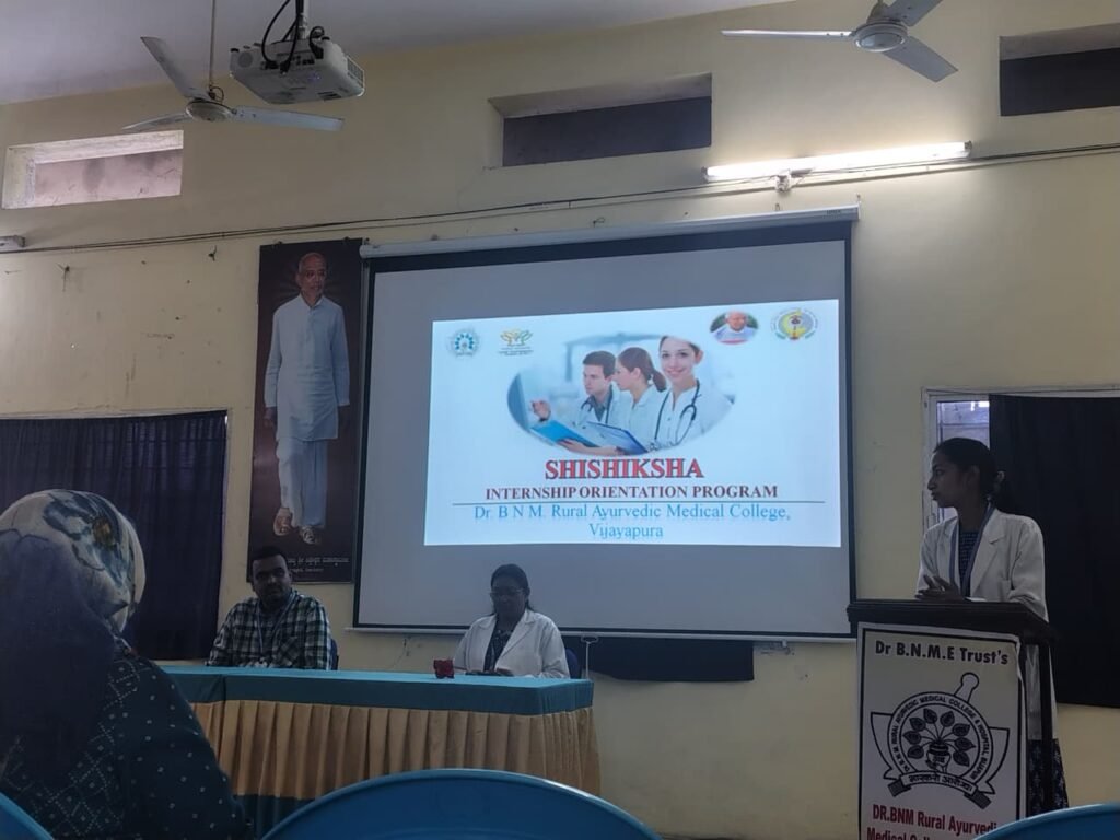 The Internship Orientation Program – “Shishiksha” was organized at Dr. B.N.M. Rural Ayurvedic Medical College and Hospital, Vijayapur, from 8th October to 14th October 2025.