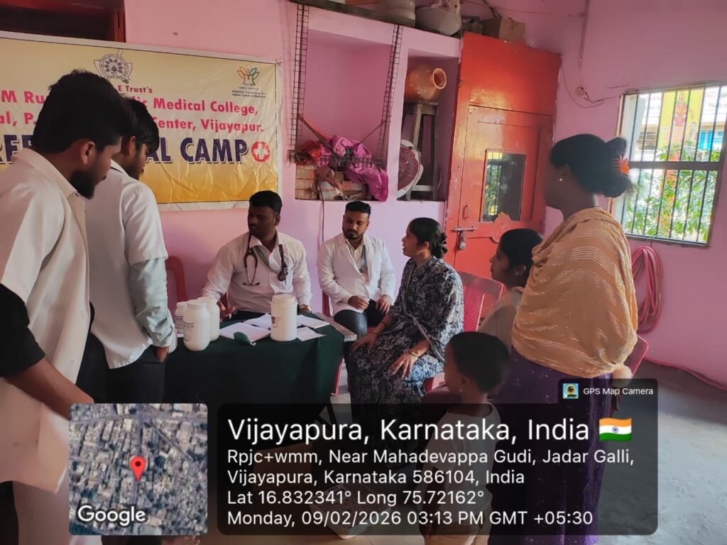 The free medical camp was organized at Mallayya Temple, APMC Road, Vijayapur dated on 09-02-2026 & 10-02-2026 for the public. The camp was inaugurated followed by health awareness speech by consultants concerned with the importance of health along with prevention and cure of diseases.