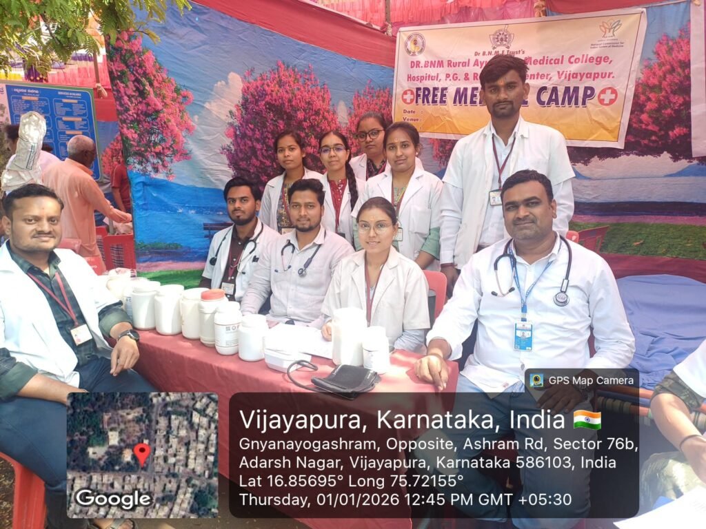 The free medical camp was organized at Ambabhavani Temple, Nehru Road, Vijayapur dated on 12-01-2026 & 13-01-2026 for the public. The camp was formally inaugurated and followed by health awareness talk by consultants highlighting the importance of health.